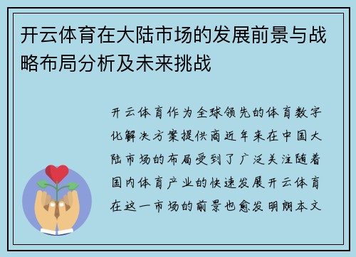 开云体育在大陆市场的发展前景与战略布局分析及未来挑战